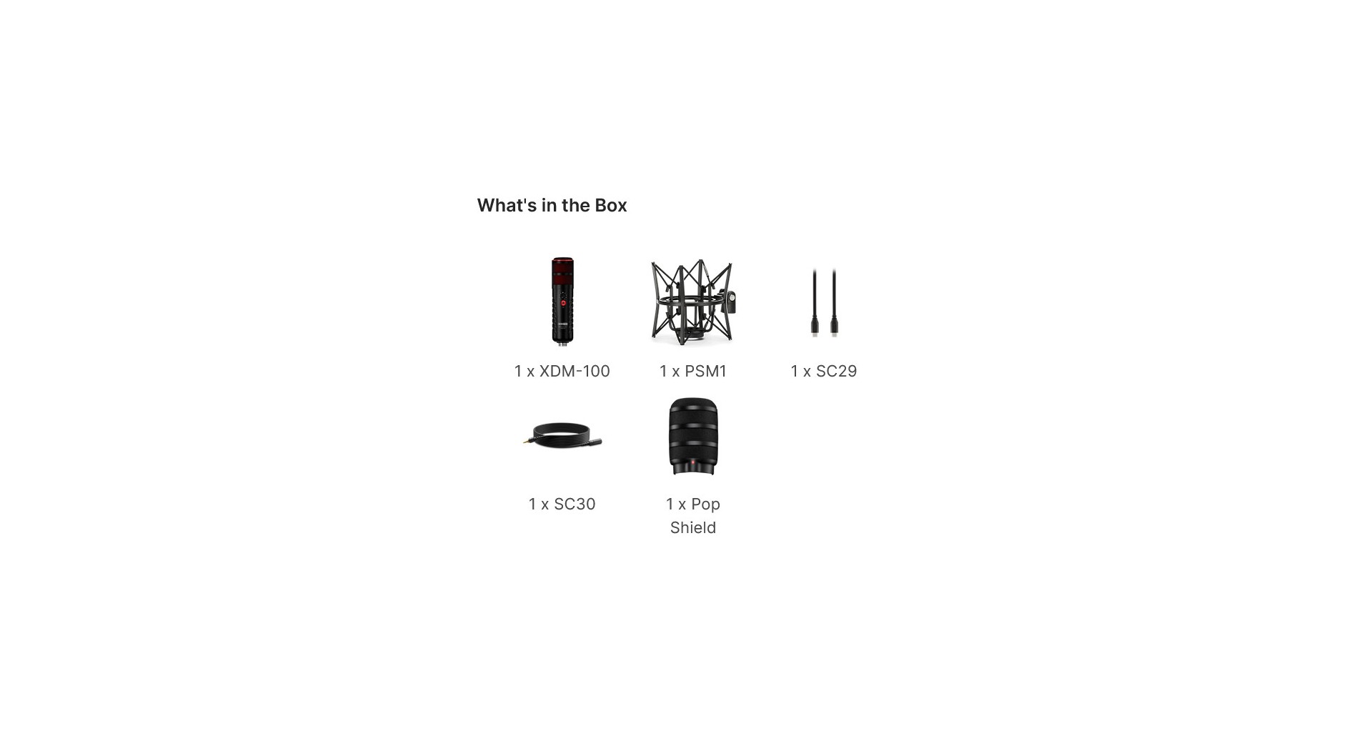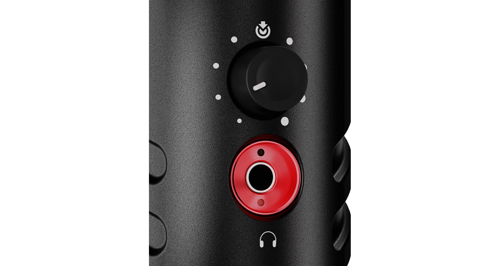 Dispune de o iesire pentru casti de 3,5 mm cu latenta zero, preamplificator Revolution Preamp™, control al nivelului, buton de mute, pop-filter si un shockmount.