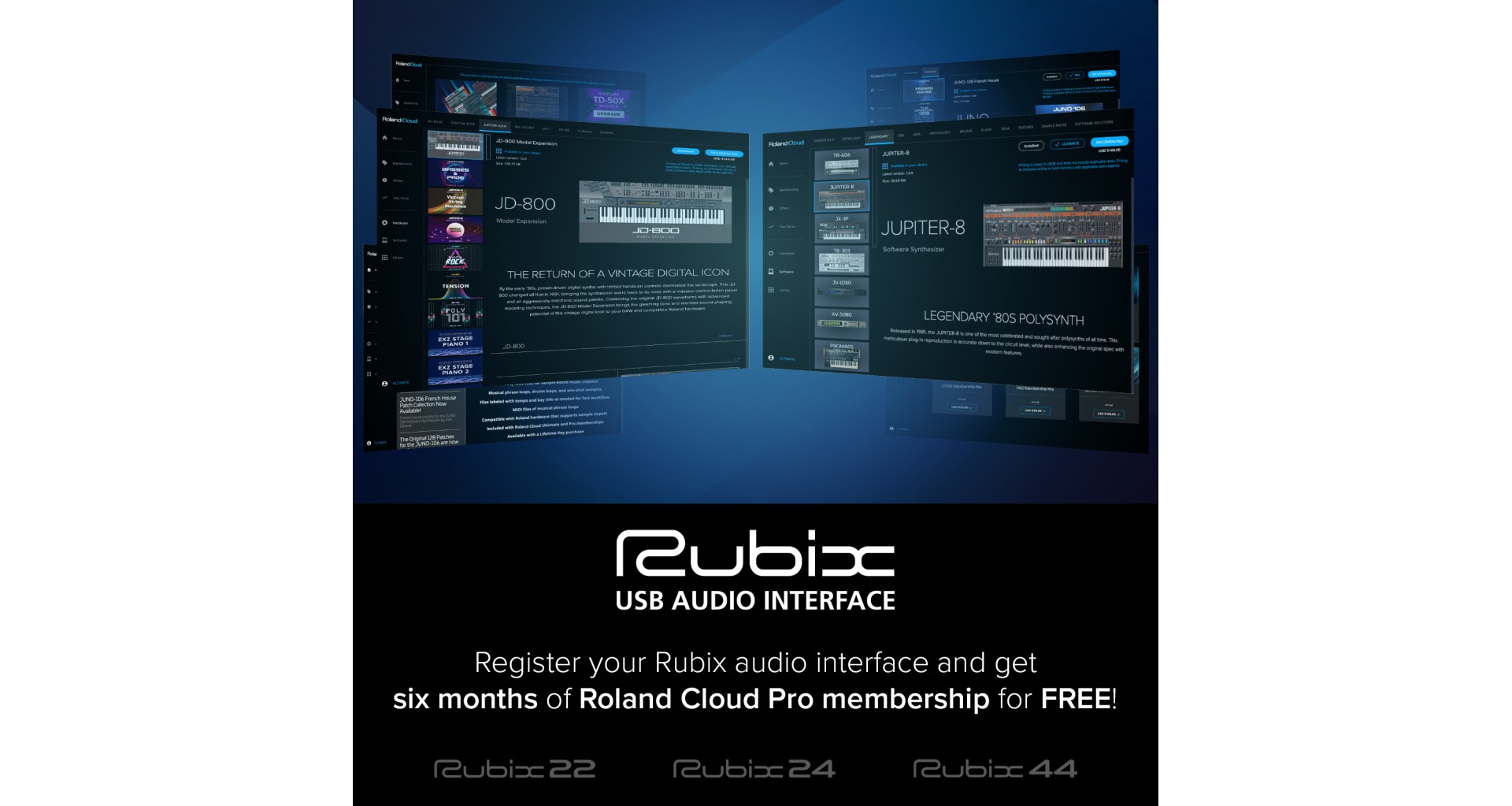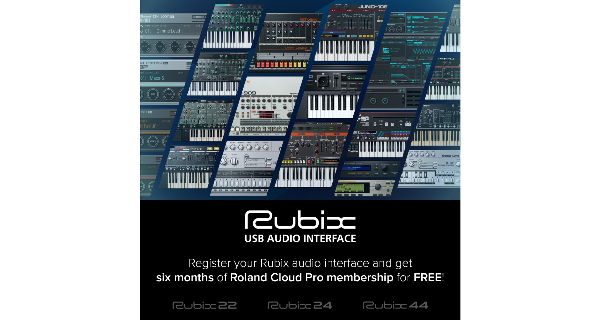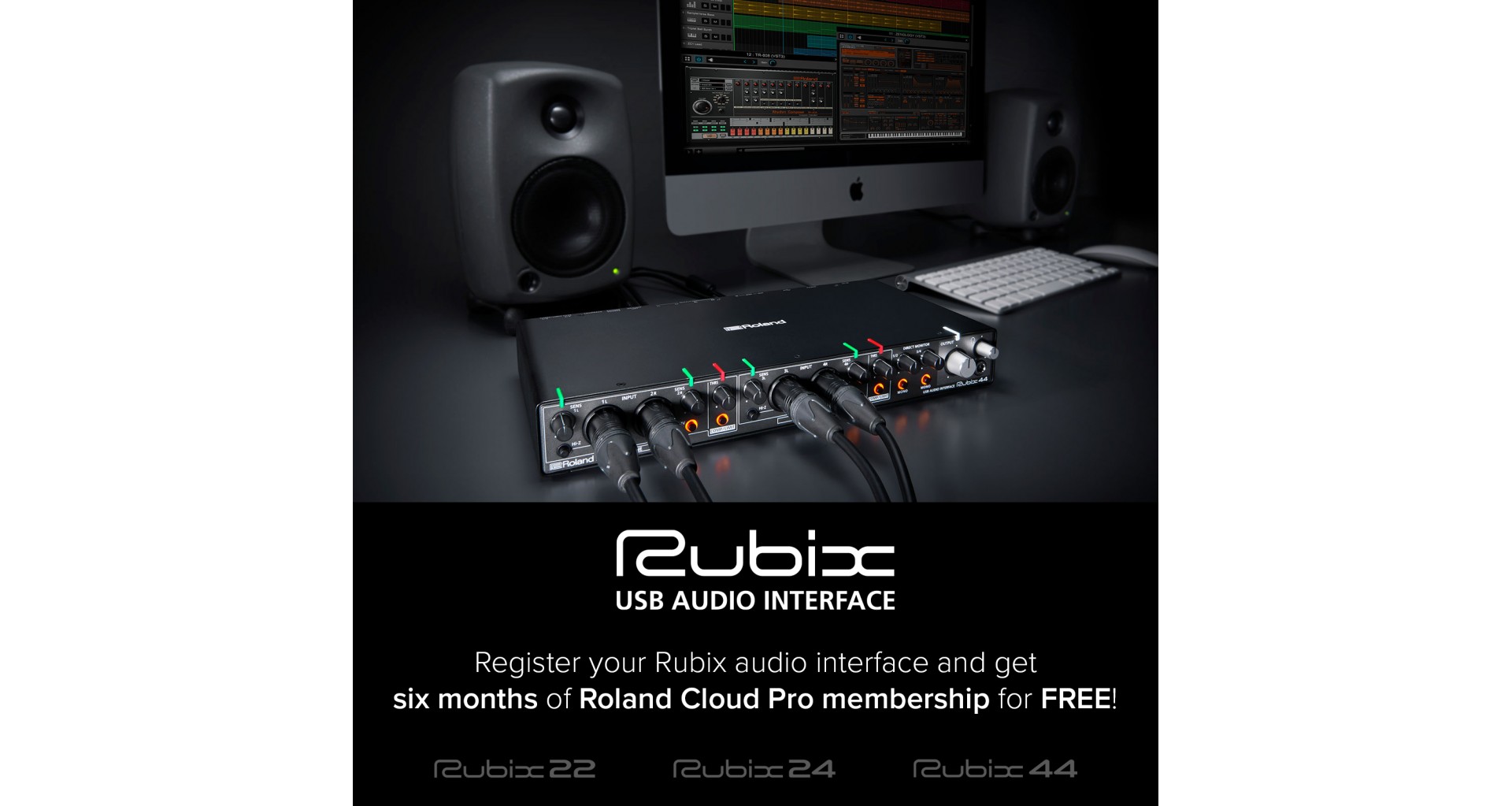 Inregistrati interfata audio Rubix pentru a beneficia de sase luni de abonament Roland Cloud Pro Gratuit: Rubix & Roland Cloud membership