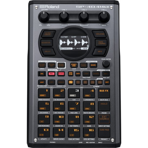 SP-404MKII este un sampler si procesor de efecte, conceput pentru productie muzicala si concerte live. Acesta este echipat cu 29 de efecte DSP de inalta calitate, 12 pad-uri si un sequencer intuitiv ideal pentru crearea de beat-uri si loop-uri. SP-404MKII ofera de asemenea, o interfata MIDI si un slot pentru card SD care faciliteaza stocarea si transferul fisierelor audio.