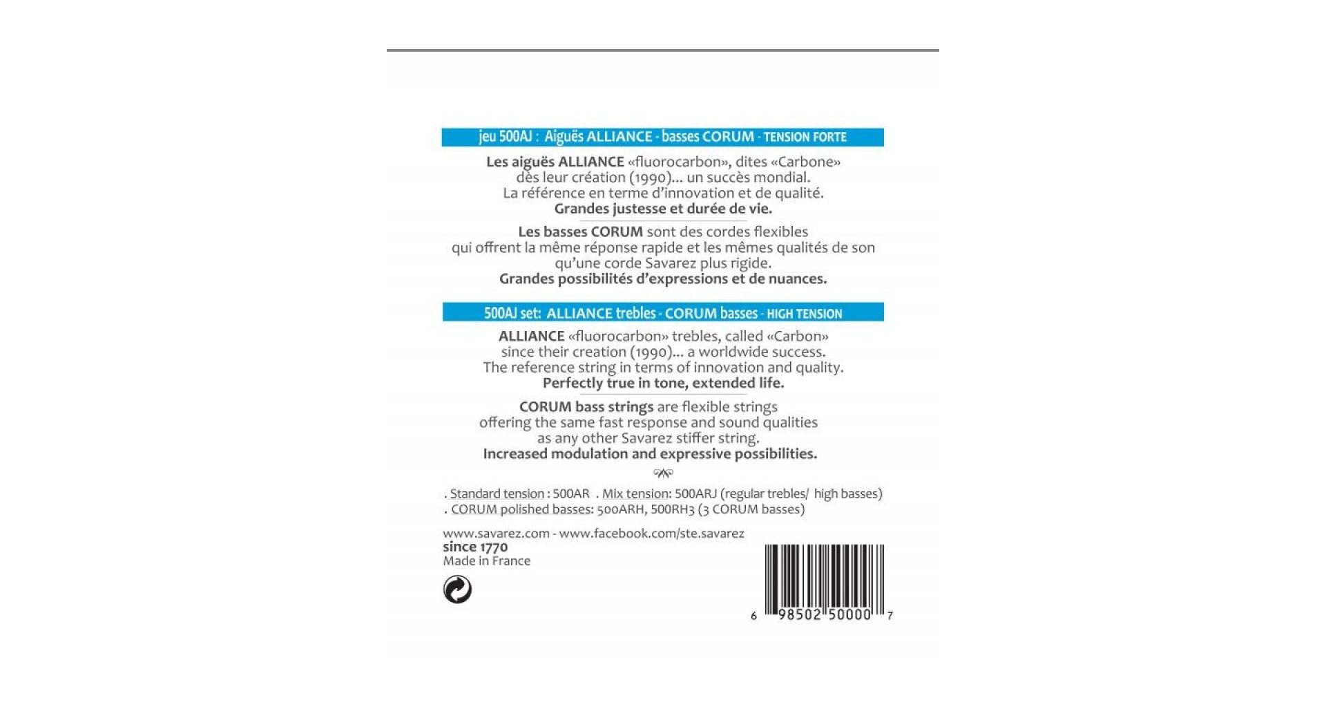 Specificatii Tehnice Savarez Alliance Corum 500AJ High Tension