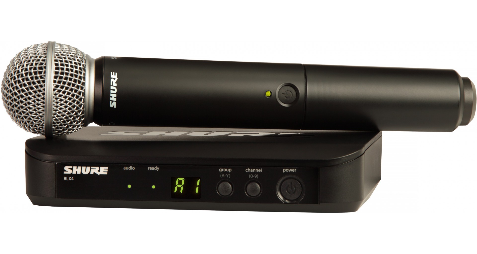 - Pachetul include: Receiver (1 singur canal) BLX4, transmitator de mana BLX2/SM58, nuca de microfon, alimentator, 2 baterii AA.