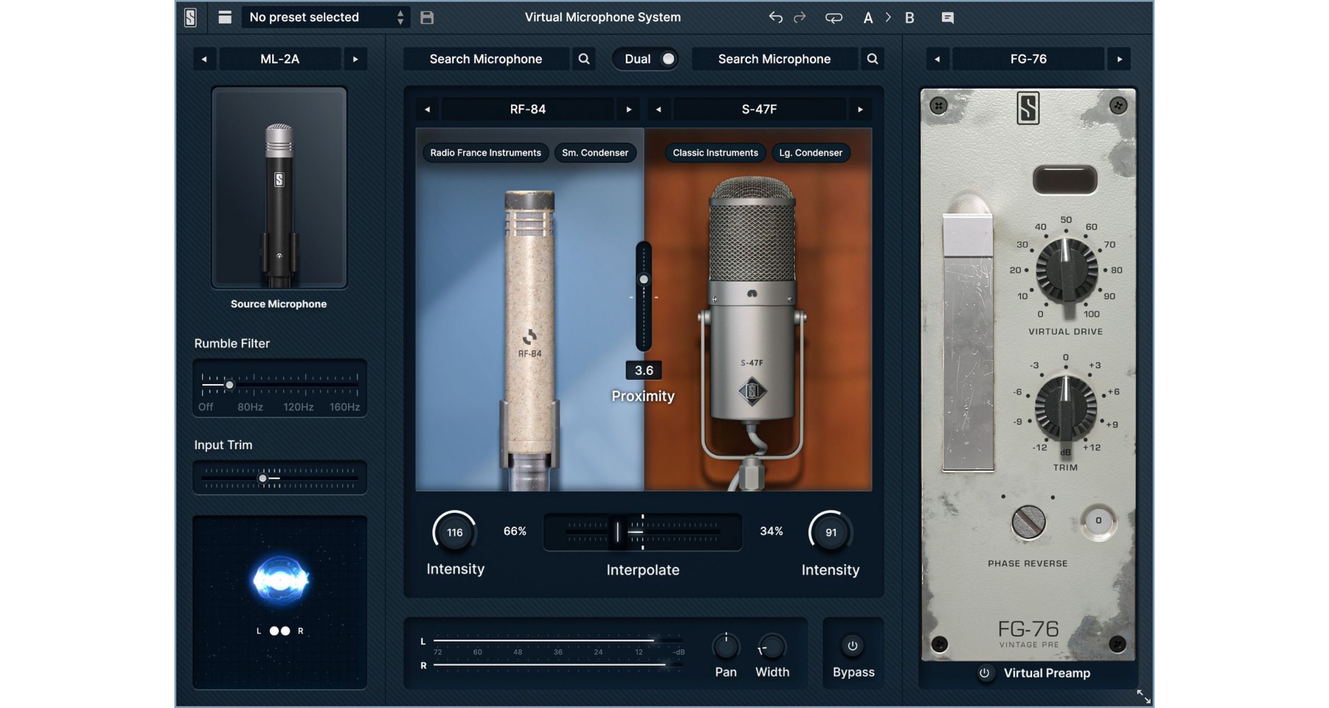 Slate Digital ML-2A este un set stereo de microfoane condenser cu diafragma mica, cardioid, livrate ca pereche matched din fabrica. Fiecare microfon suporta pana la 156 dB SPL cu pad-ul de -20 dB activ, are un zgomot propriu redus de doar 16 dB(A) si include comutator de roll-off la 80 Hz. Microfoanele sunt concepute sa functioneze cu plugin-ul Virtual Microphone System ce ofera acces la 27 de modele virtuale de microfon, cu control de proximitate, intensitate si latime stereo. Setul este potrivit pentru inregistrari stereo detaliate: overhead-uri de tobe, instrumente acustice, pian sau ansambluri instrumentale. Produsul include bara de montare stereo, accesorii de prindere (nuci de microfon) si acces la software prin download digital.