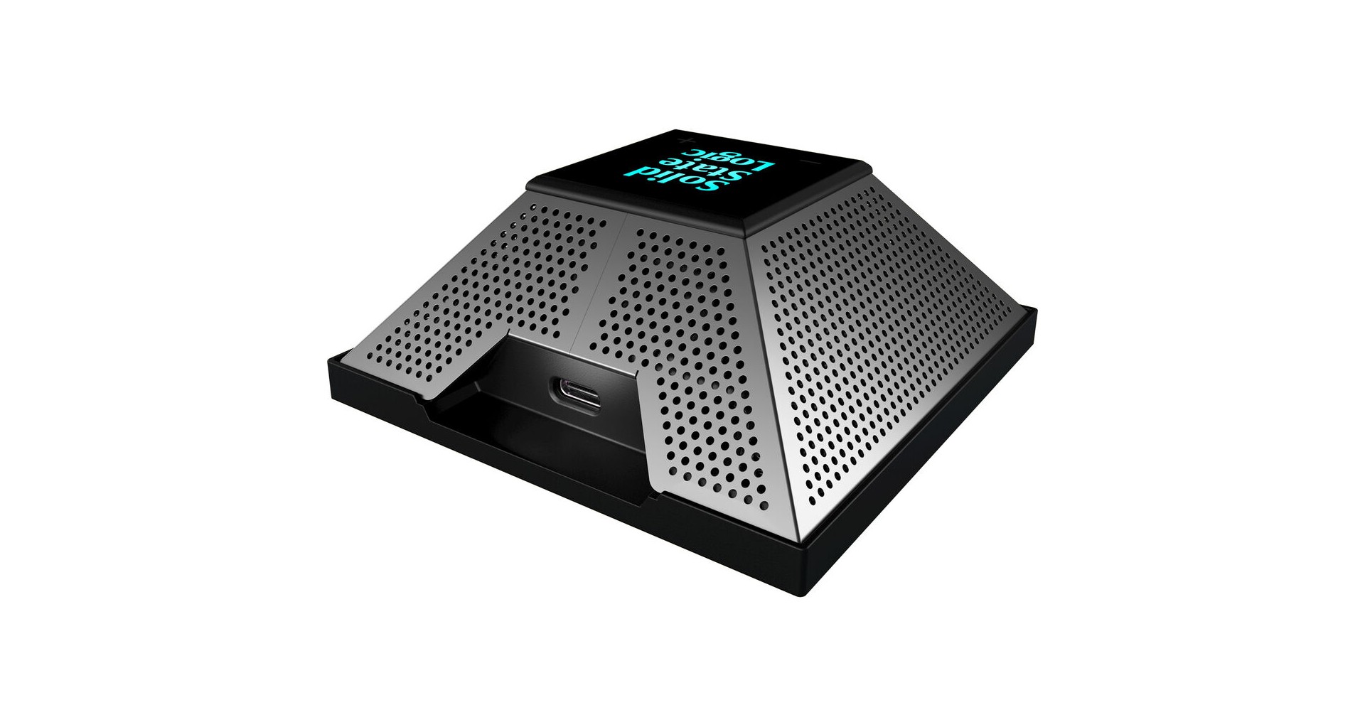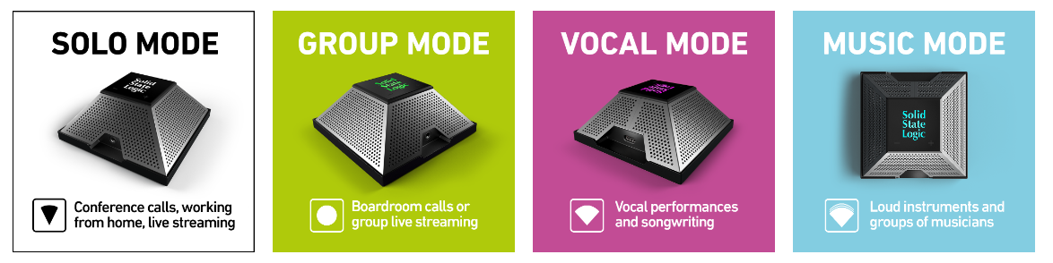 Logo-ul Solid State Logic este iluminat RGB si indica starea microfonului si modul utilizator.