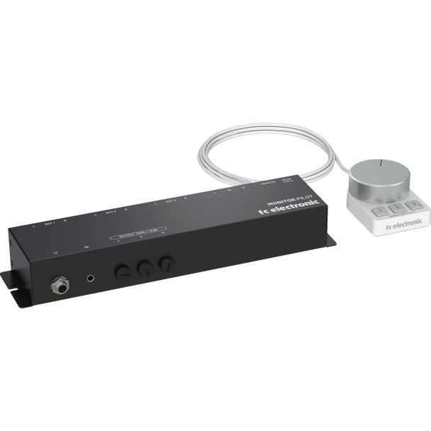 TC Electronic Monitor Pilot este un controller pentru studio, ideal pentru gestionarea a pana la 3 perechi de monitoare si a unei perechi de casti. Controller-ul include o carcasa desktop rezistenta ce poate fi montata optional sub birou, dispune de o cale de semnal analogica si de reglaje precise ale volumului de iesire, cu ajustare de +/- 9 dB pentru fiecare pereche de monitoare. Telecomanda cu fir permite controlul volumului si comutarea intre doua surse audio (A/B) cu usurinta. TC Electronic Monitor Pilot include 2 intrari de linie XLR balansate, 1 intrare de linie jack mini de 3,5 mm stereo, 6 iesiri de XLR balansate pentru monitoare si 1 iesire stereo pentru casti jack cu jack de 6,3 mm. Pachetul include adaptor de alimentare extern.