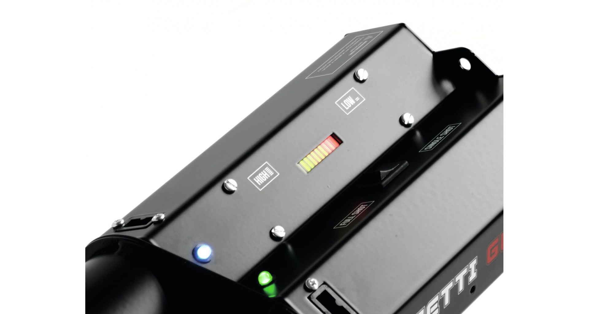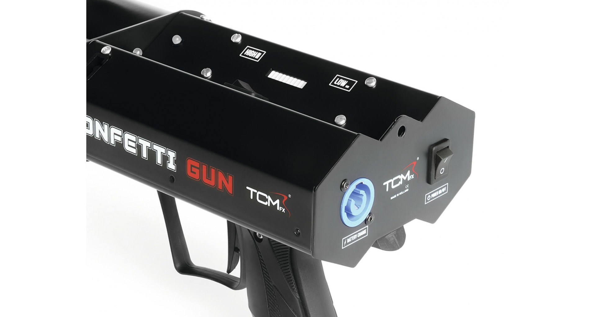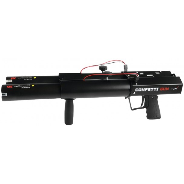 TCM FX Confetti Gun este un pistol electric portabil pentru lansarea de confetti sau streamere. Este compatibil cu tunuri electrice cu lungimea de 50 si 80 cm si ofera mod de tragere single shot sau full shot. Distanta de proiectie este de aproximativ 20 m, iar controlul se face direct de pe dispozitiv, prin comutator on/off. Alimentarea se realizeaza la 230 V AC, cu un consum de putere de 100 W, iar conexiunea electrica se realizeaza prin conector PowerCON. Carcasa este neagra, unitatea are dimensiuni compacte (13 x 41 x 18 cm) si o greutate de 2,7 kg. Produs fabricat in Europa, destinat utilizarii la evenimente precum carnavaluri, parade, festivaluri si alte evenimente similare.