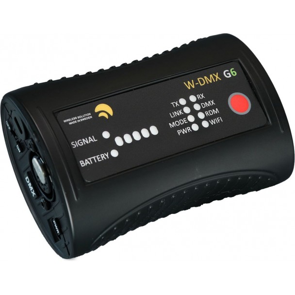 Receiver-ul Wireless Solution MicroBox G6 F-1 este unul dintre cele mai compacte receptoare DMX din portofoliul Wireless Solution. Acesta poate transmite date DMX si RDM prin tehnologia AFHSS si suporta tehnologiile W-DMX Datasafe si Invisi-wire. Receiver-ul MicroBox G6 F-1 include conectivitate Bluetooth pentru configurarea optiunilor prin aplicatia W-DMX Configurator disponibila pentru Android si iOS.