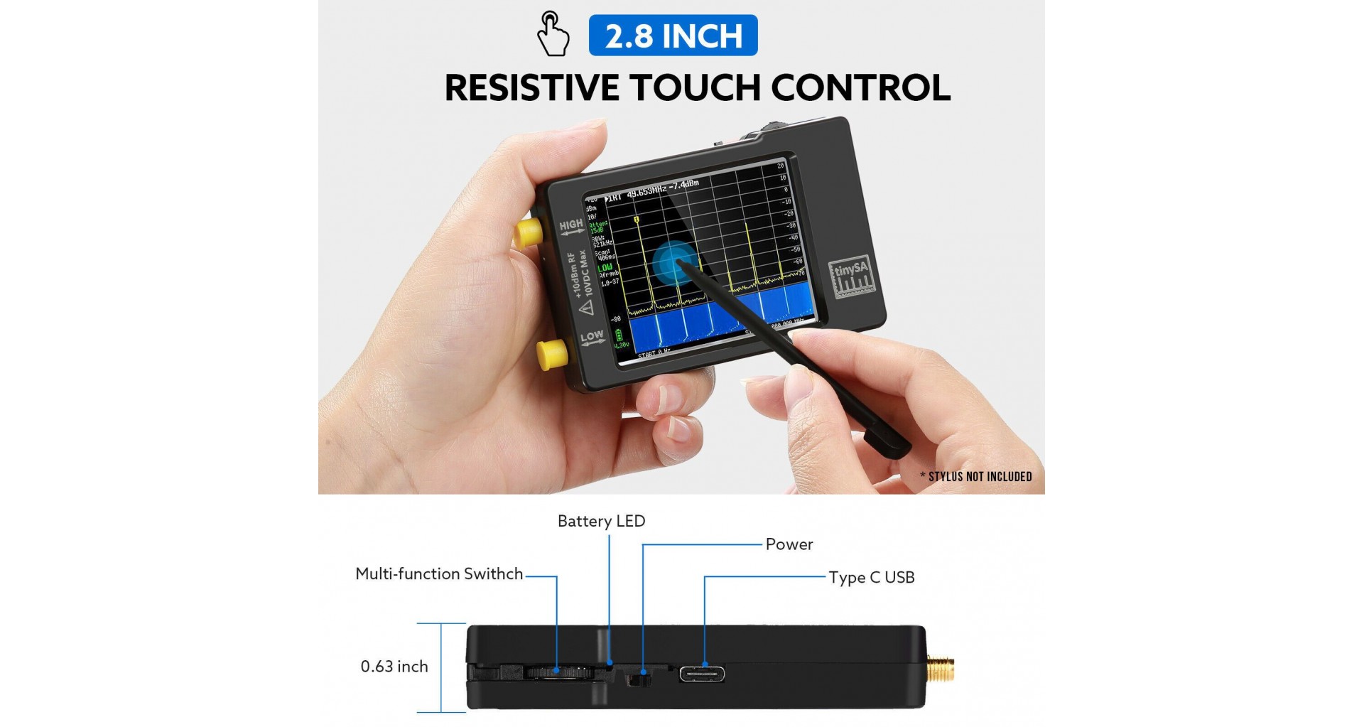 Zeenko tinySA este un analizor de spectru portabil care acopera domeniul 0.1 - 960 MHz, ideal pentru masuratori MF/HF/VHF si UHF. Dispune de un touchscreen color de 2.8 inch, 290 puncte de scanare si baterie reincarcabila cu o autonomie de aproximativ 2 ore. Are doua moduri de intrare (frecventa joasa si inalta), atenuator intern reglabil si filtru de banda comutabil. Precizia nivelului de putere este de ±1 dB dupa calibrare, cu un interval dinamic de pana la 70 dB. Poate functiona si ca generator de semnal (sinewave sau squarewave), cu modulatii AM/FM. Se conecteaza la PC prin USB si include functii de autocalibrare. Produs original Zeenko.