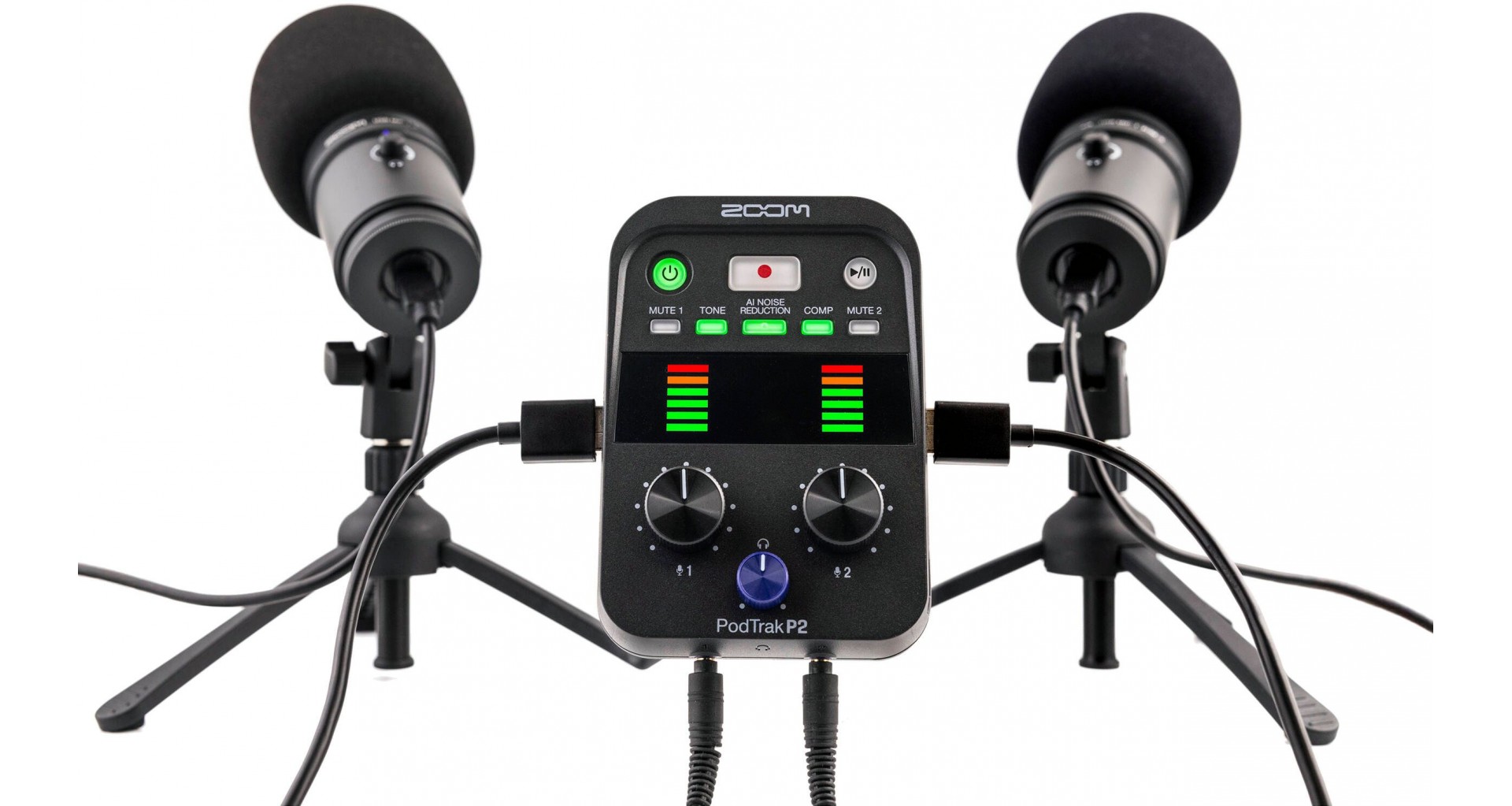 Zoom PodTrak P2 este un recorder digital portabil excelent pentru inregistrari de calitate ridicata, fie ca inregistrezi in studio sau pe teren. Recorderul este compact si usor, dispune de doua intrari USB pentru microfoane si doua iesiri pentru casti, facilitand monitorizarea in timp real. Zoom PodTrak P2 beneficiaza de reducere a zgomotului de fond prin AI, control automat al tonului (EQ & de-esser) si functie mix-minus ce elimina ecoul in timpul apelurilor, oferind astfel o claritate audio superioara. Echipamentul inregistreaza pe carduri SD (pana la 1TB) la 24-bit/48kHz si se poate alimenta atat prin USB-C, cat si cu 4 baterii AA.